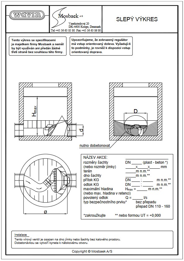 Vírový regulátor odtoku Mosbaek Typ CYE 275
