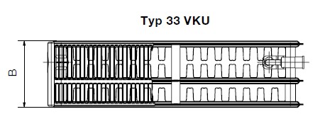 Deskové otopné těleso RADIK VKU s ventilem, pravé nebo levé spodní připojení. Rozteč 50mm, 2x G1/2" vnitřní. Hloubka B = 155mm.