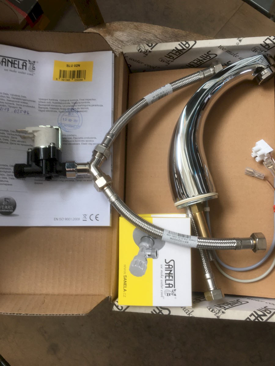 - SLU 02N je určena pro přívod teplé a studené vody, nastavení teploty ručně rohovými ventily reaguje na přítomnost rukou ve snímané zóně okamžitým spuštěním vody
