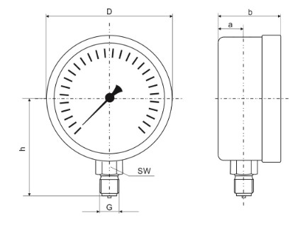 SUKU Modelová řada: 5331 Tlakoměr s Bourdonovou trubicí podle DIN EN 837-1