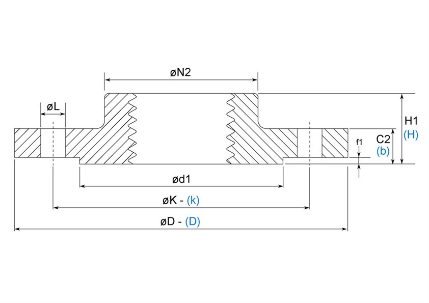 Velikost | Dimenze | PN | D | K | NרL | C2 | H1 |
